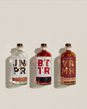 In un bicchiere Negroni (old fashioned) riempito con cubetti di ghiaccio (o, ancora meglio, un cubetto di ghiaccio), aggiungere BTTR #1, JNPR #1 e VRMH #1. Mescolare delicatamente con il cucchiaio. Aggiungere una fetta o la scorza di arancia prima di servire.
