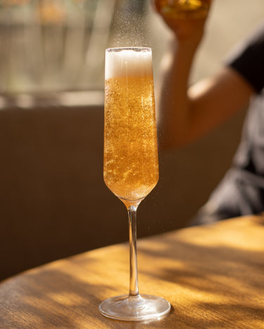 50 ml de JNPR n°3 15 ml de sirop de vanille Des paillettes alimentaires 80 ml de mousseux sans alcool