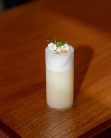 - Dans un shaker sans glaçon, verser JNPR n°1, le sirop de fleur de sureau, le jus de citron, la crème entière, le blanc d'oeuf et l'eau de fleur d'oranger.